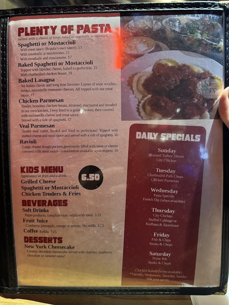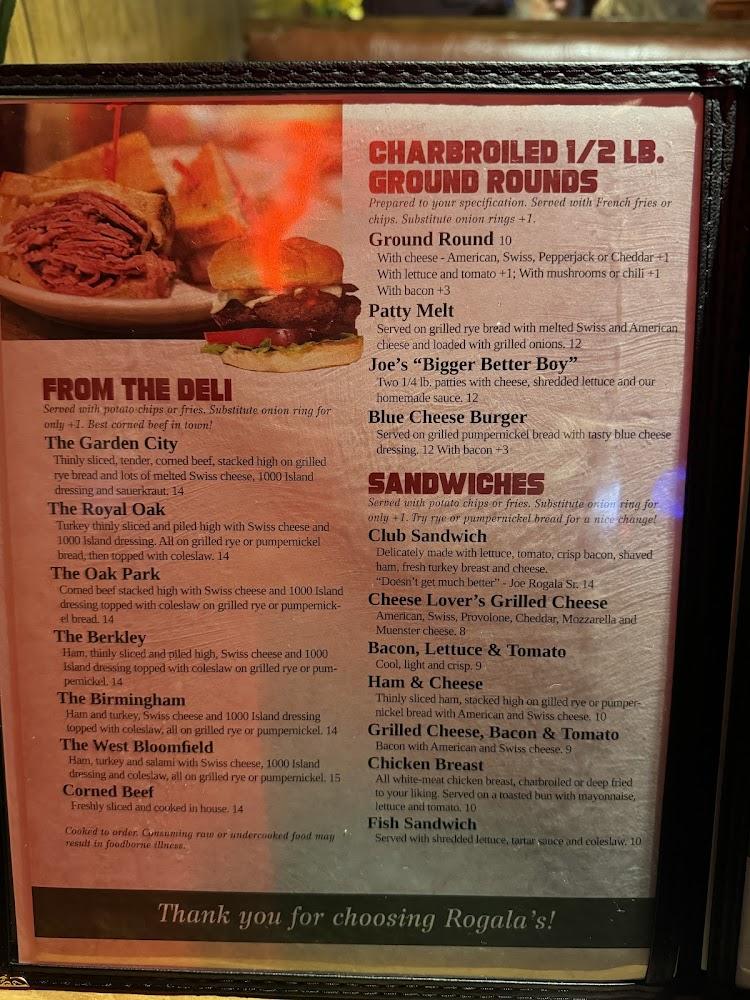 Rogala's menu features a variety of items catering to diverse tastes. Highlights include fried cheese strips and chicken wings, perfect for sharing. Soup fans can enjoy daily homemade selections, along with chili soup.